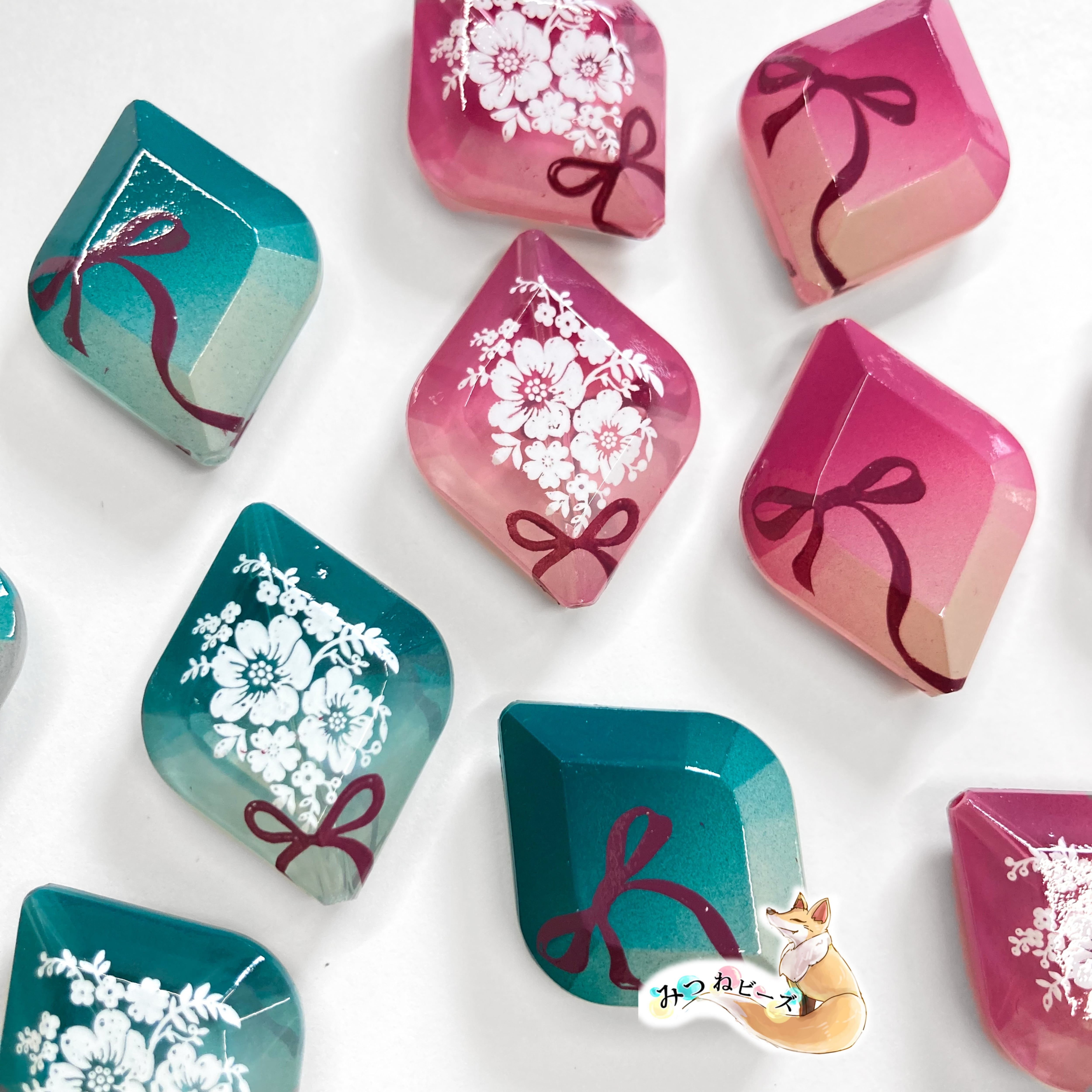 クリアビーズに着色をしたオリジナルビーズです