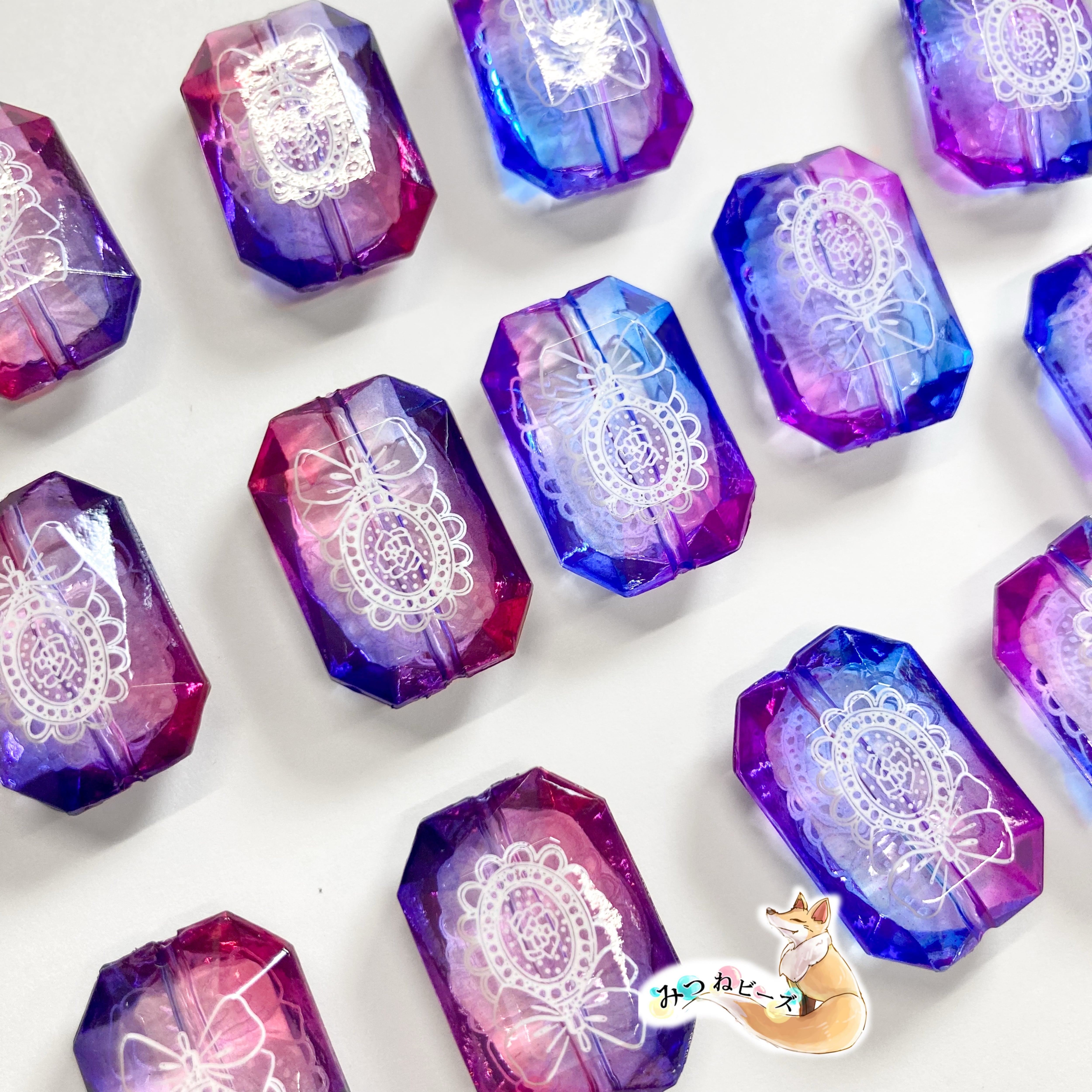 クリアビーズに着色をしたオリジナルビーズです