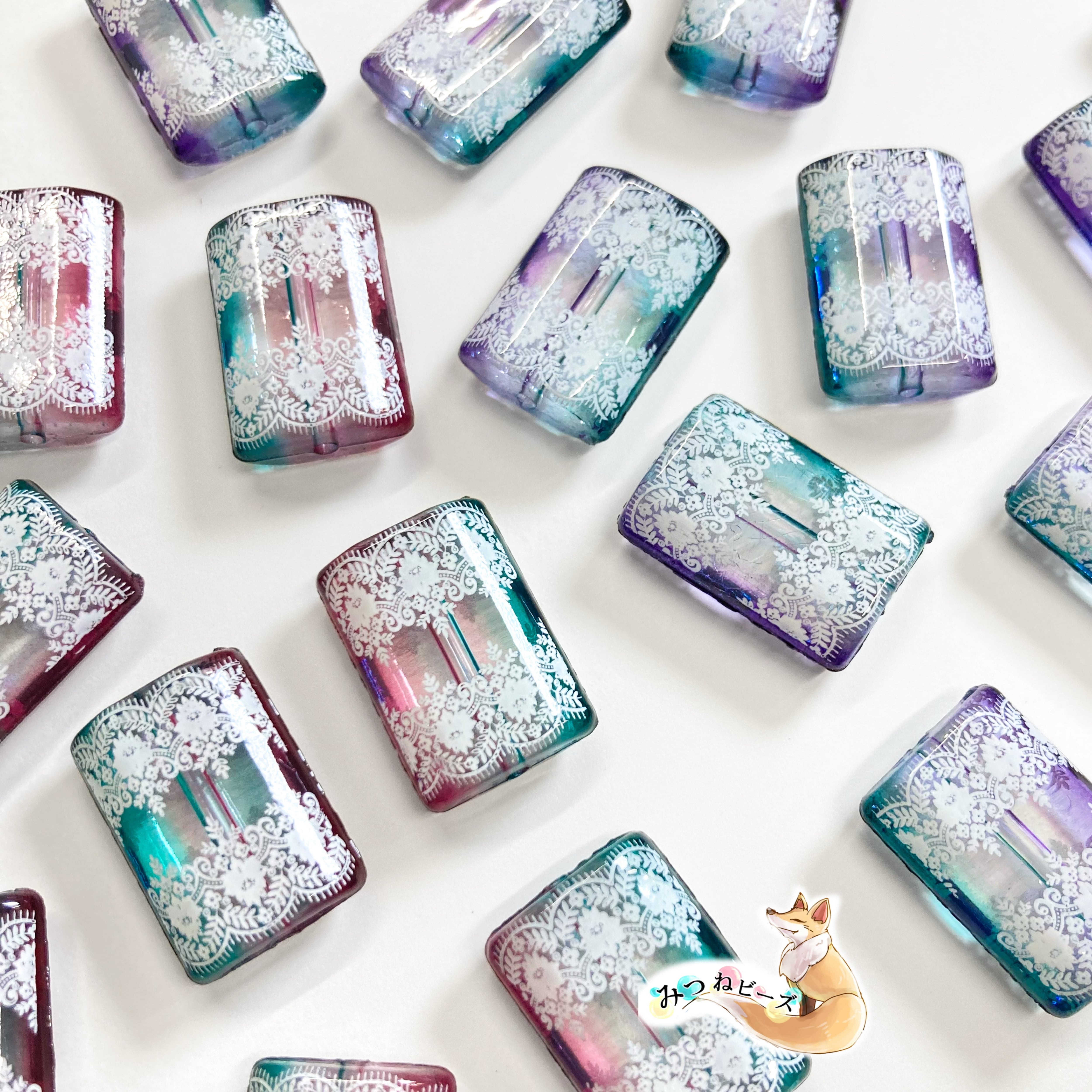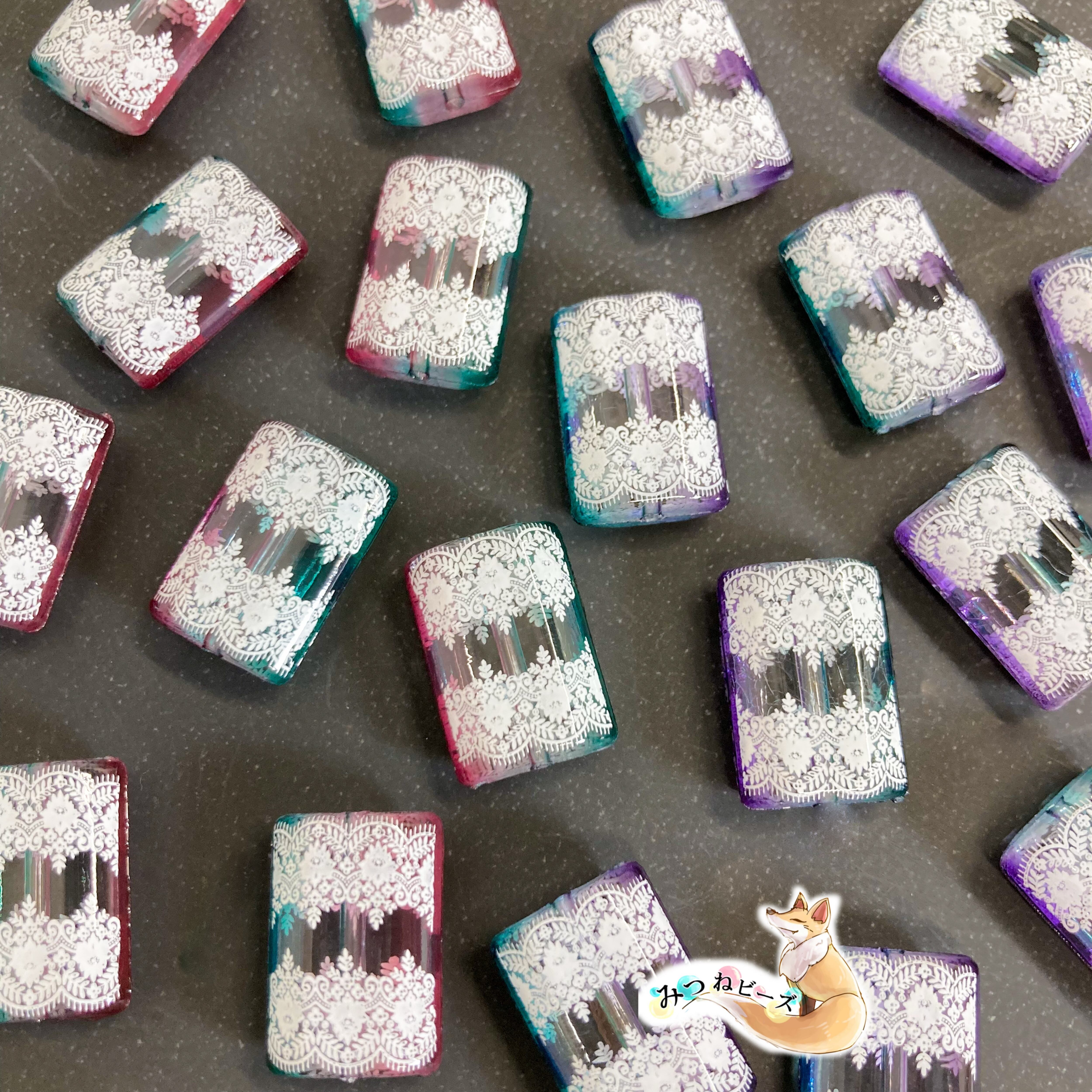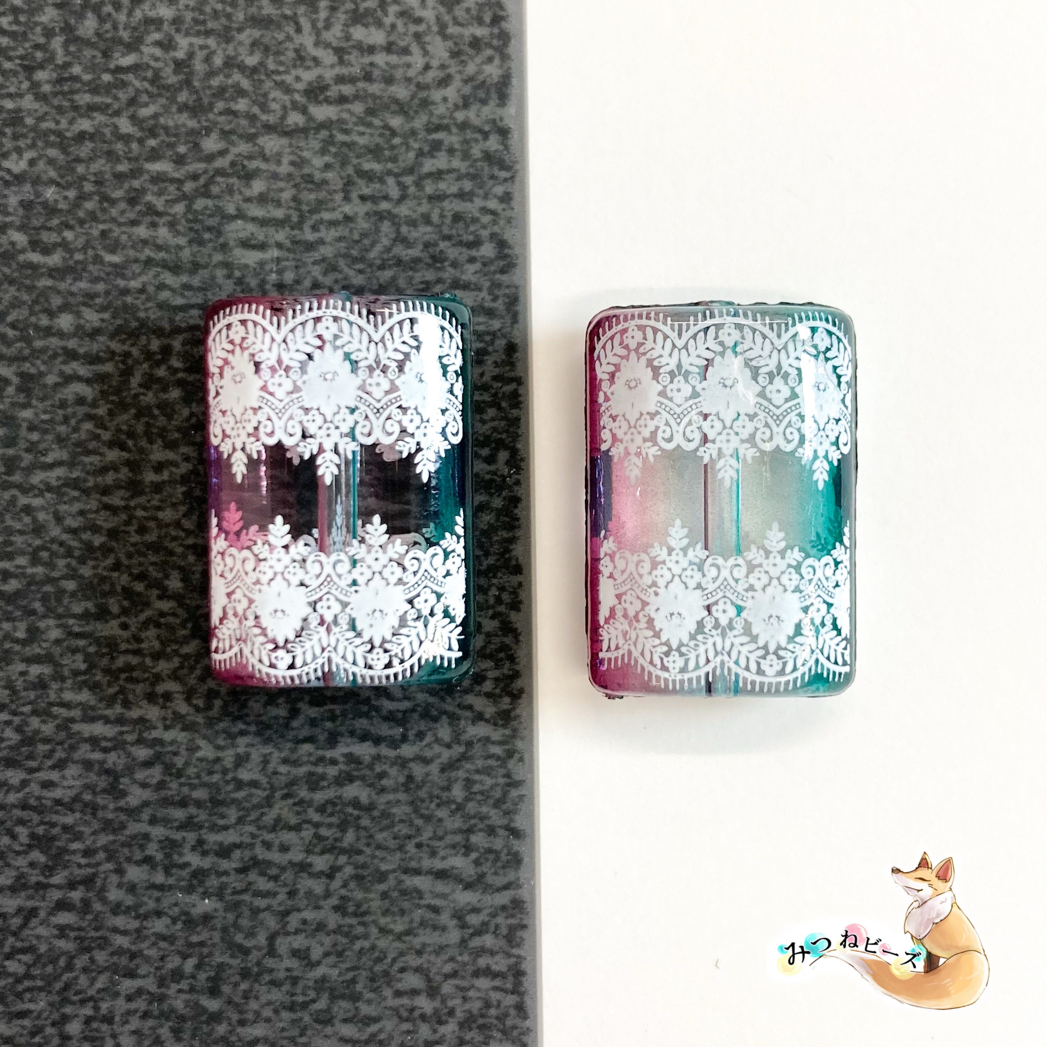 エッジがカーブした長方形型のビーズに2カラーで色付け