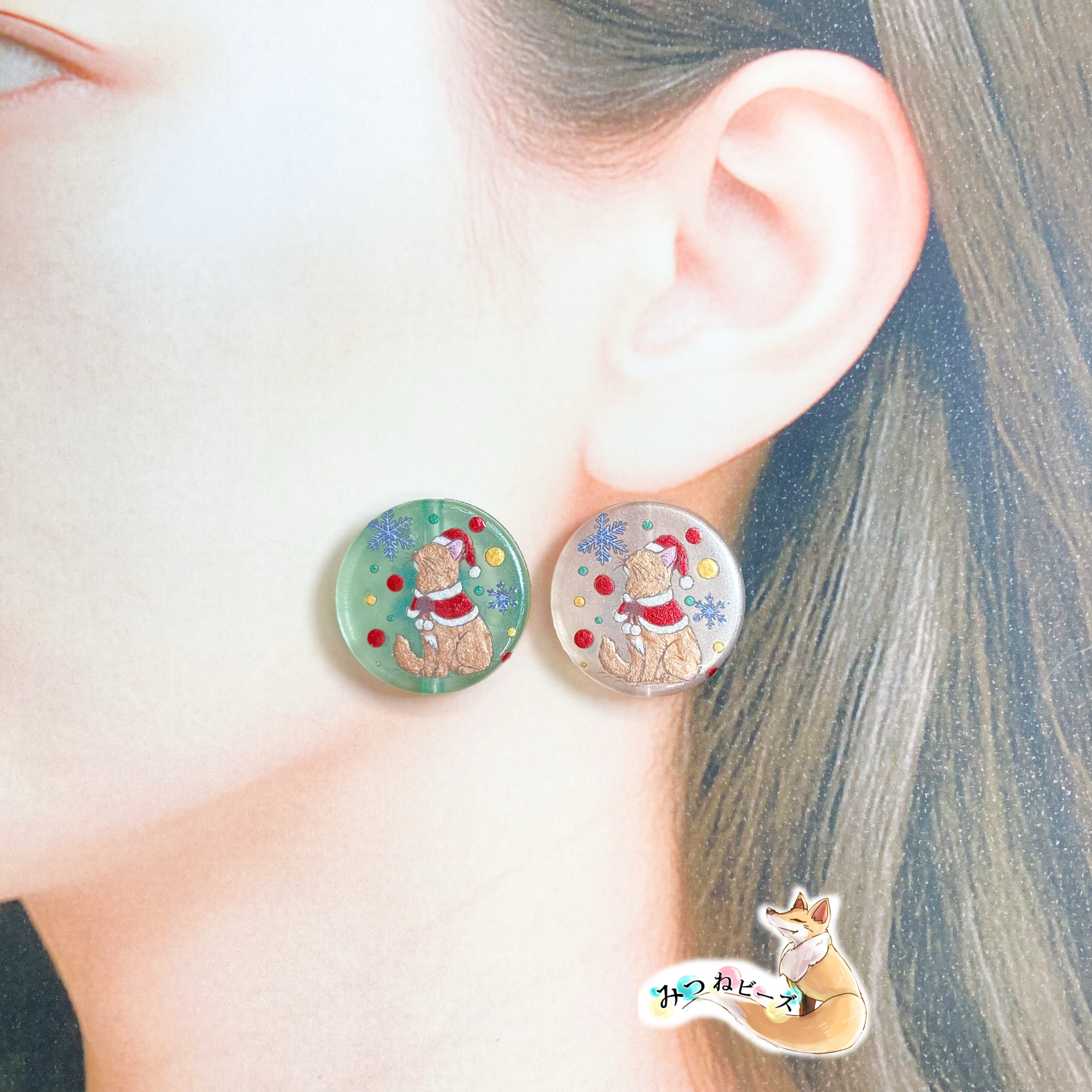 大ぶりのラウンド型のビーズに細かな色分けでサンタの衣装でおめかしした猫ちゃんの柄を作りました。