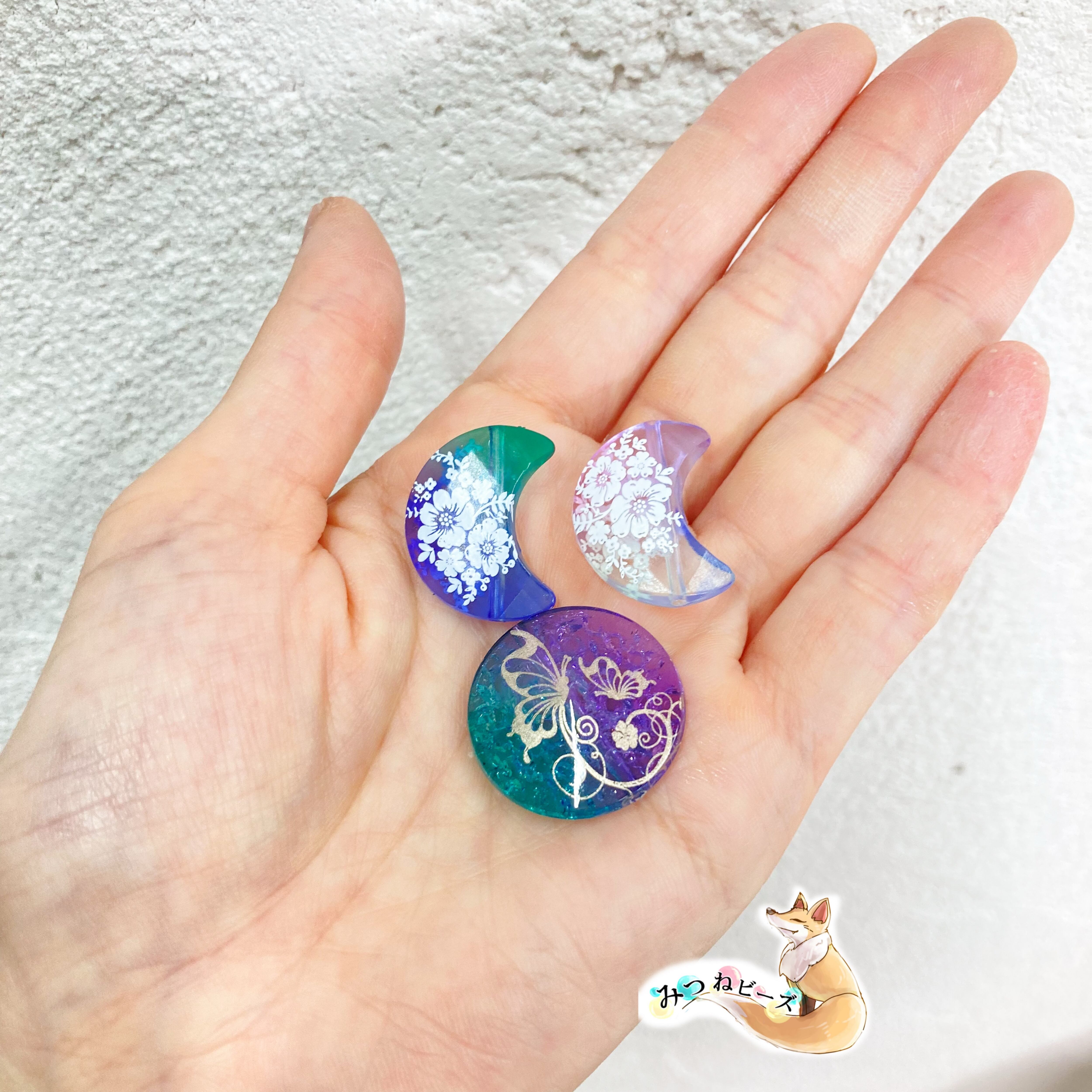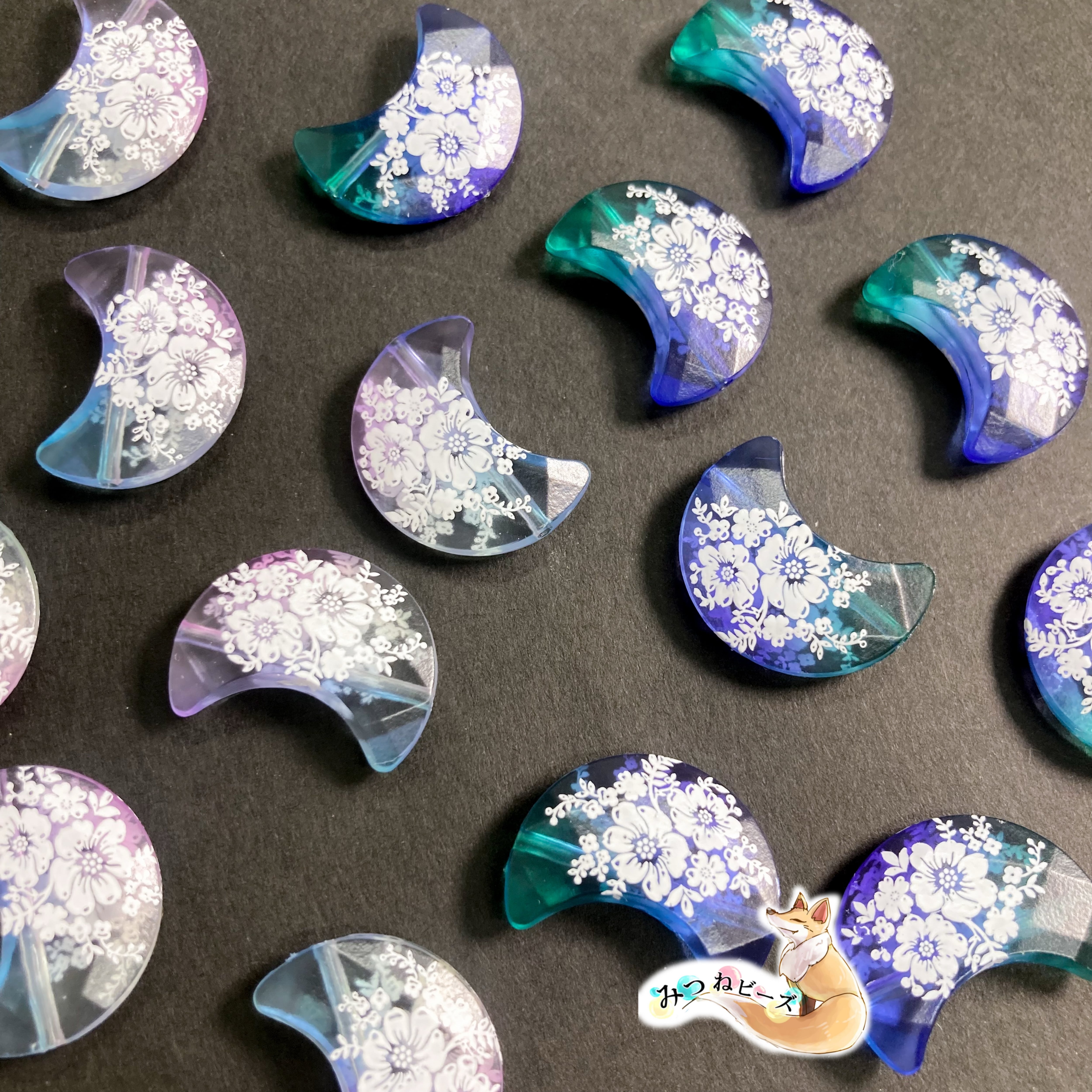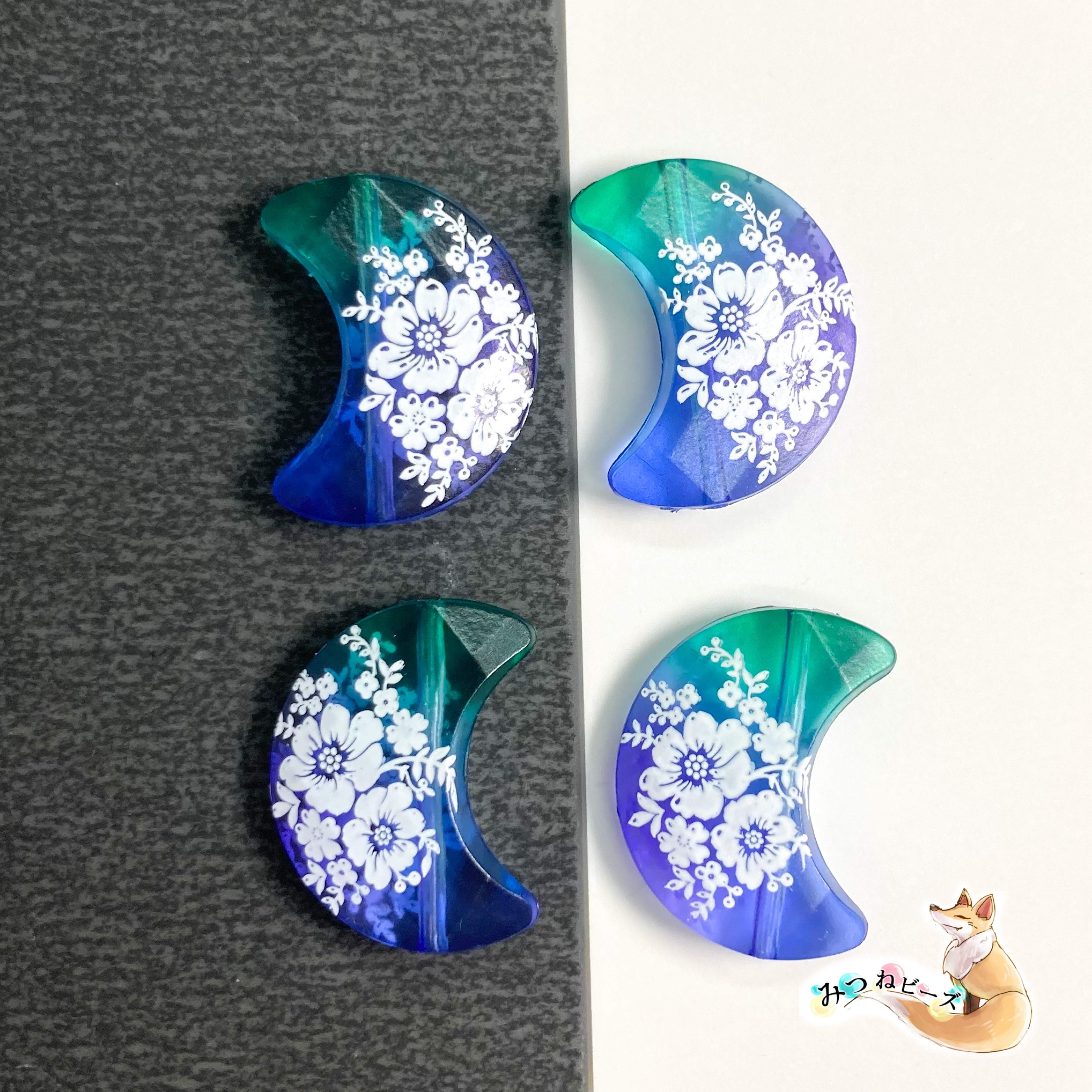 セミマット 花柄 お月様ビーズ ブルー×パープル×グリーン×ホワイト