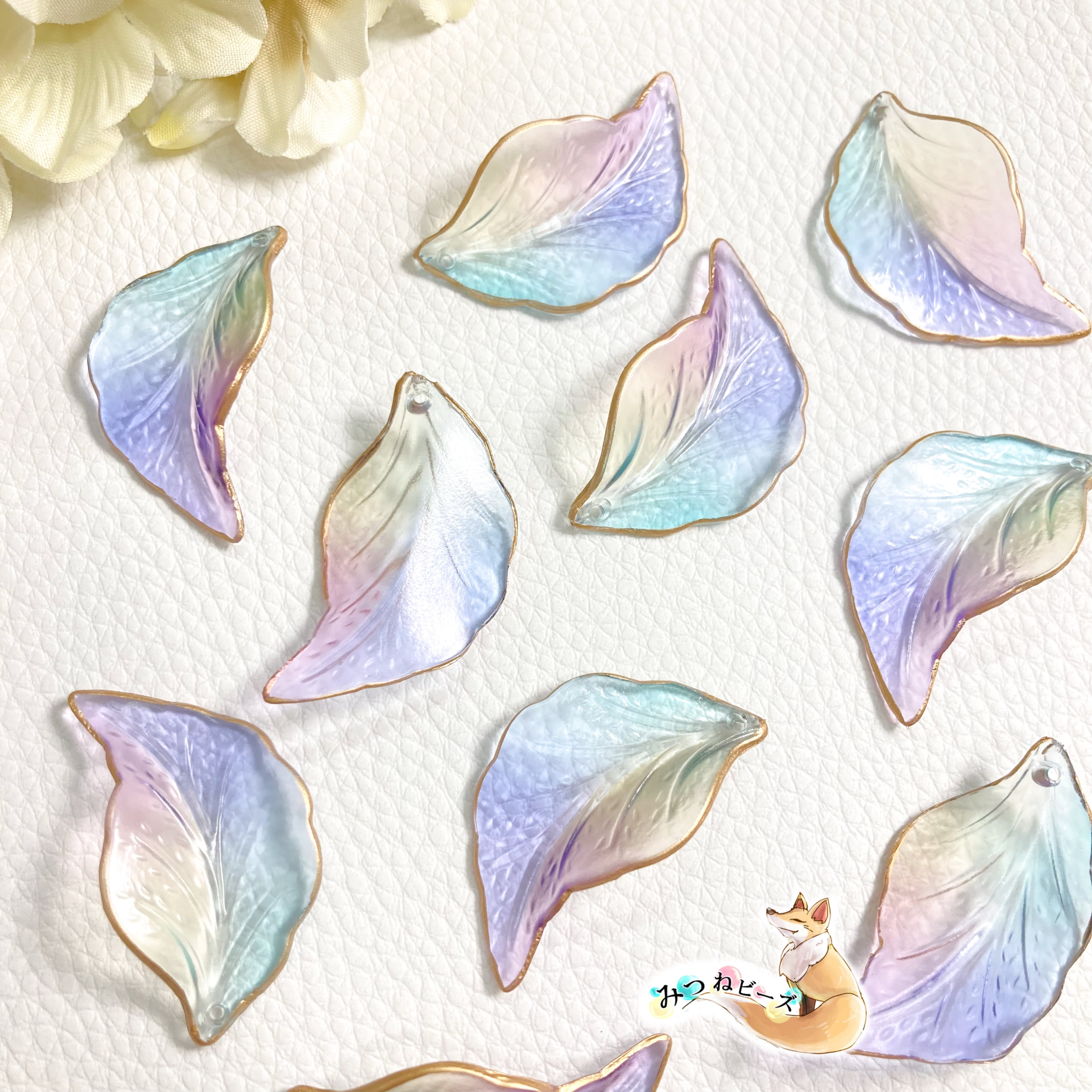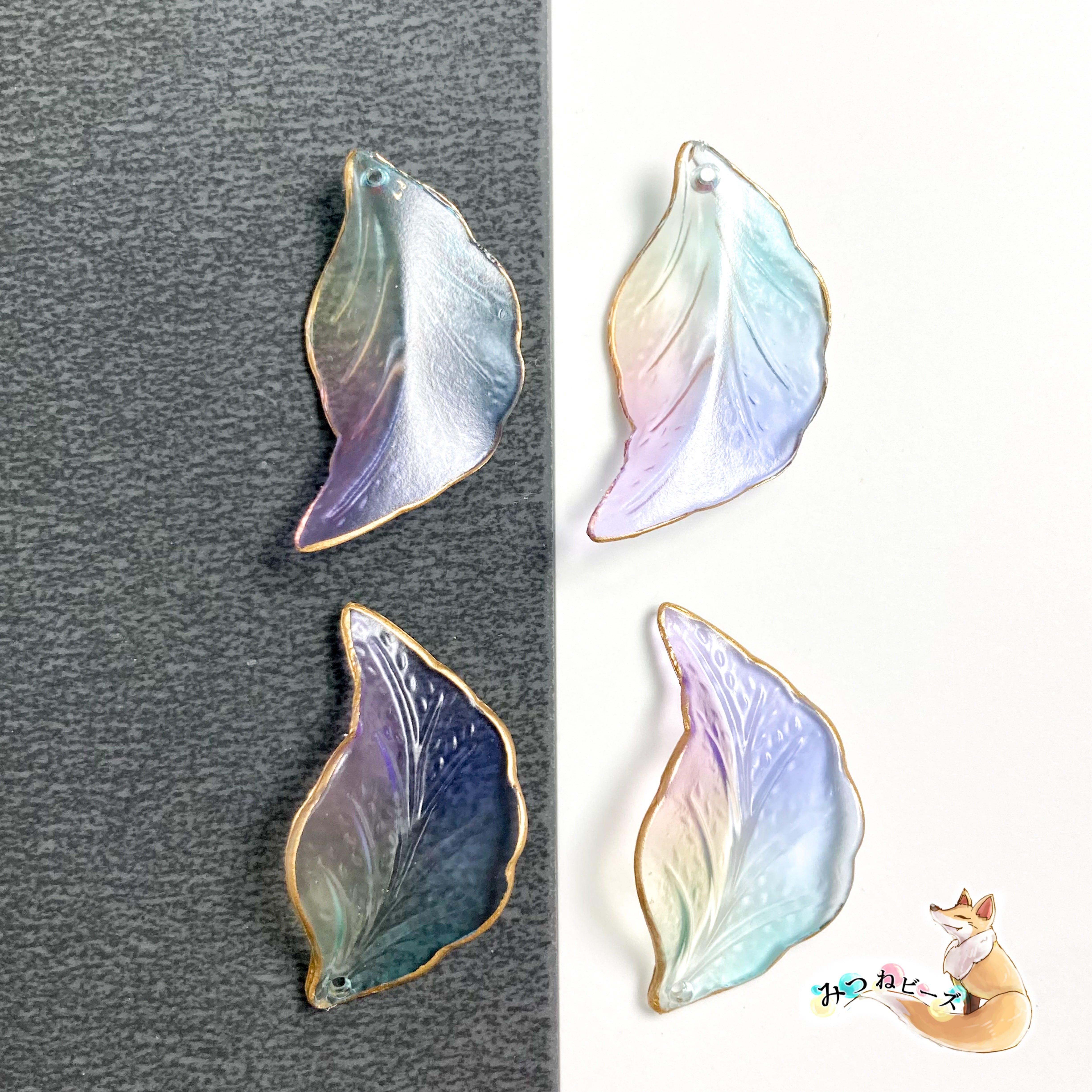 セミマット 淡色 リーフチャーム カラフル(バイオレット×イエロー×ピンク×アクアブルー)×ゴールド