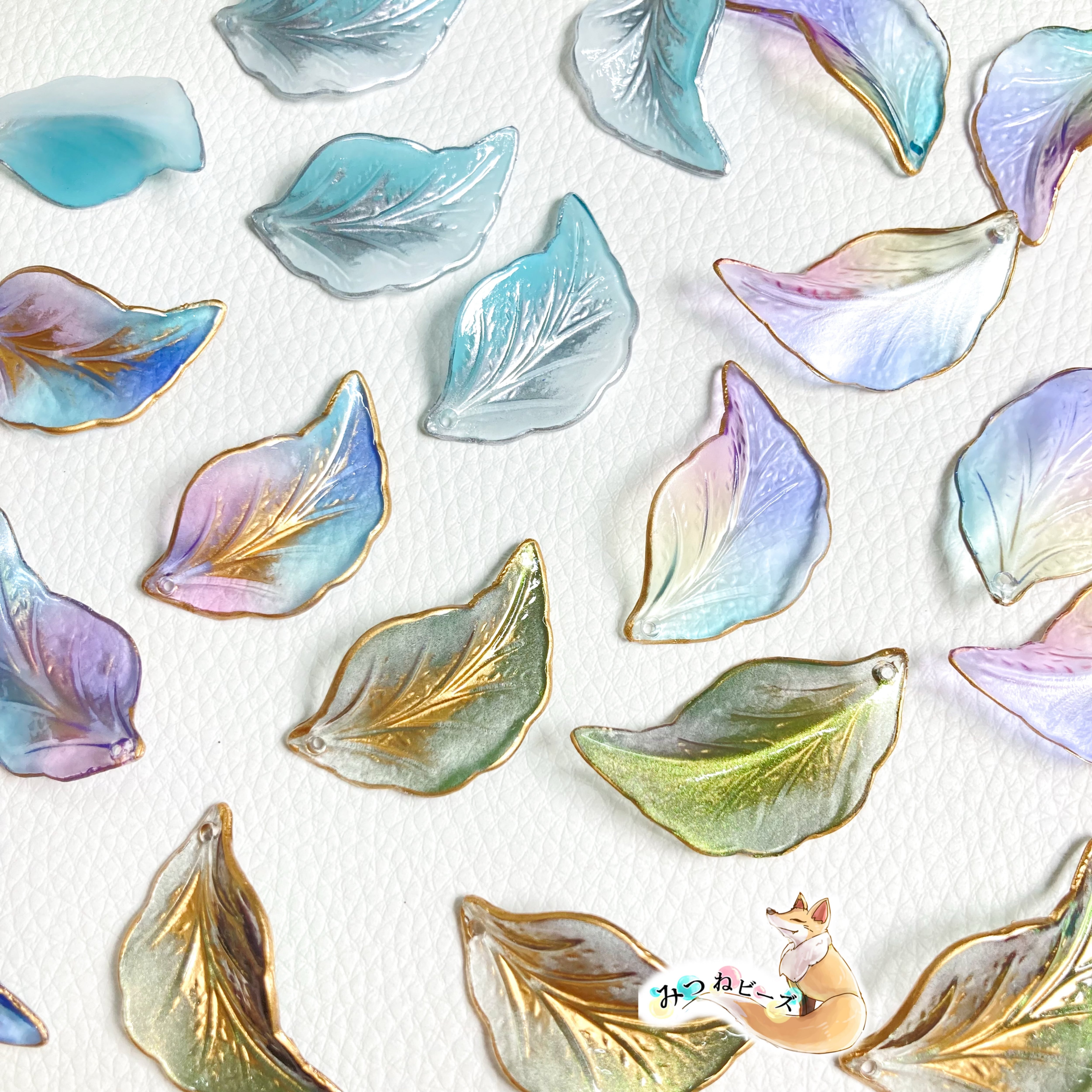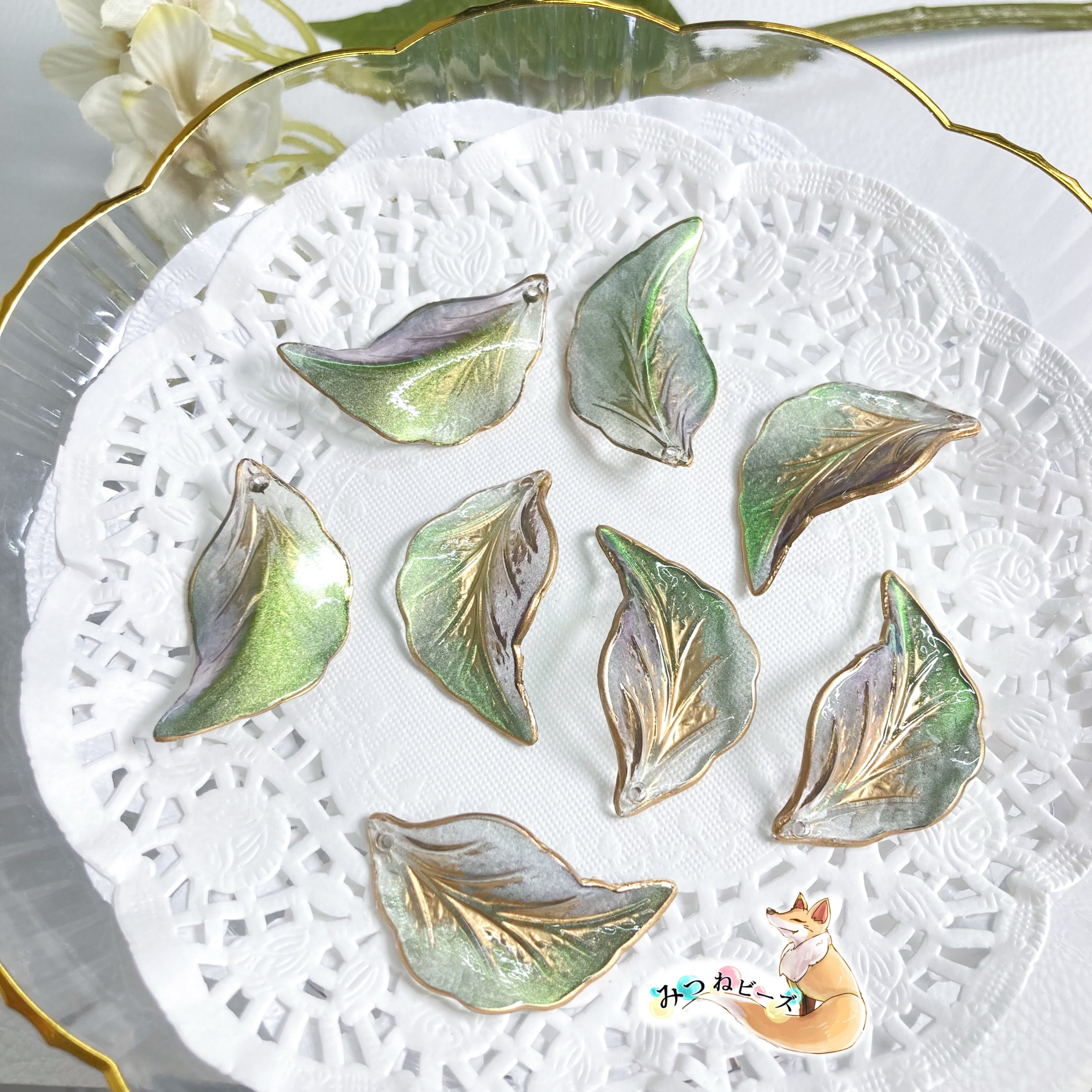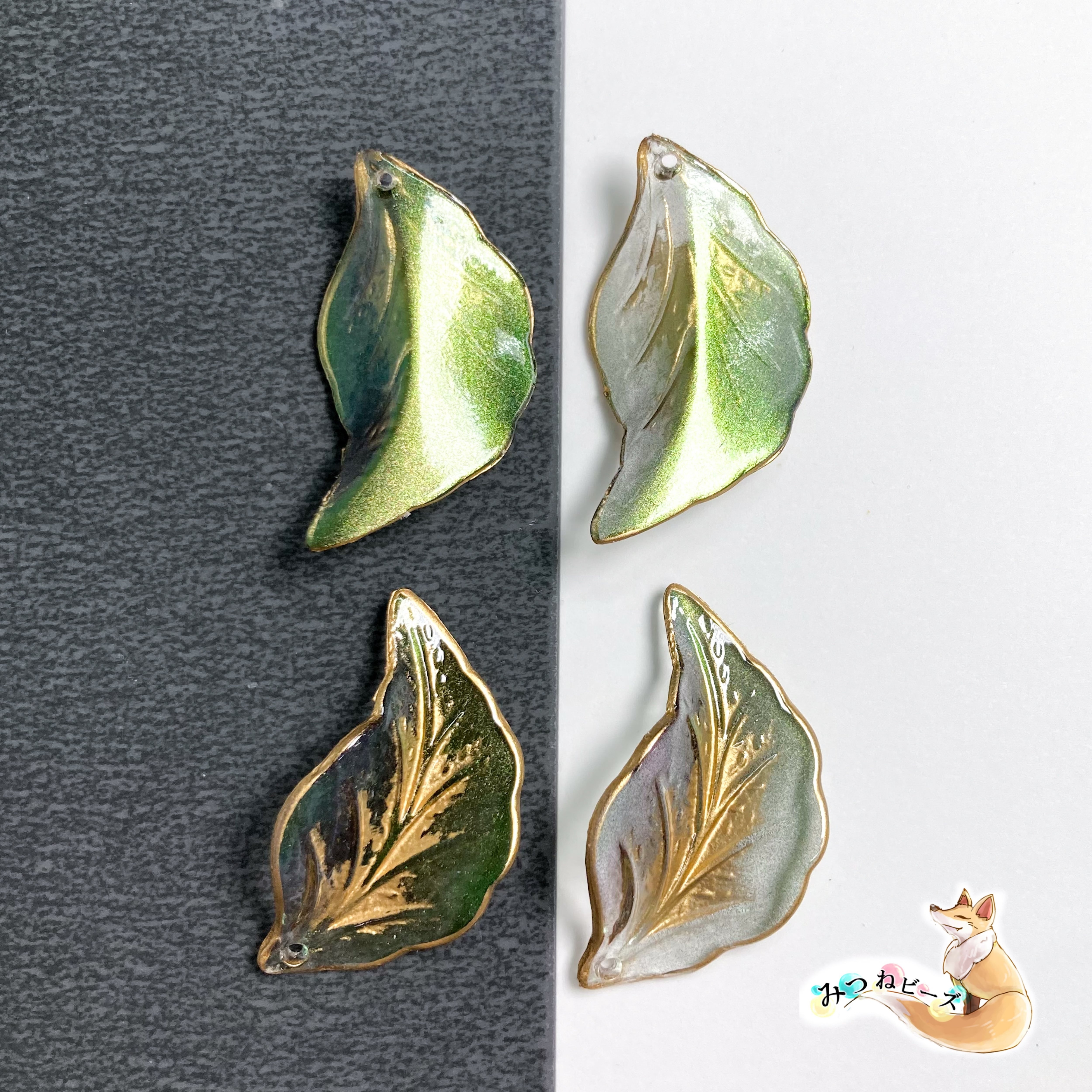 偏光カラー リーフチャーム グリーン→ブラウン×ゴールド