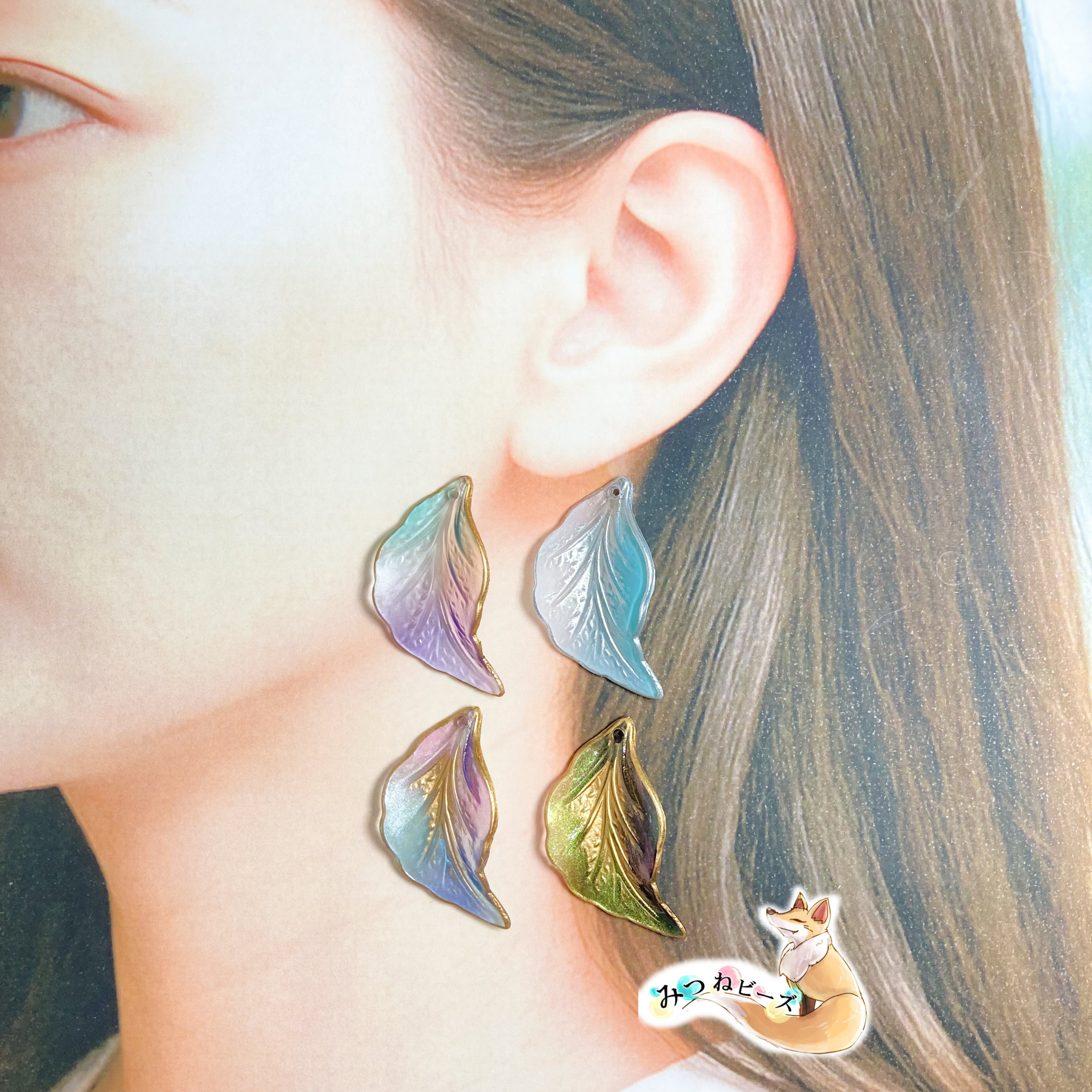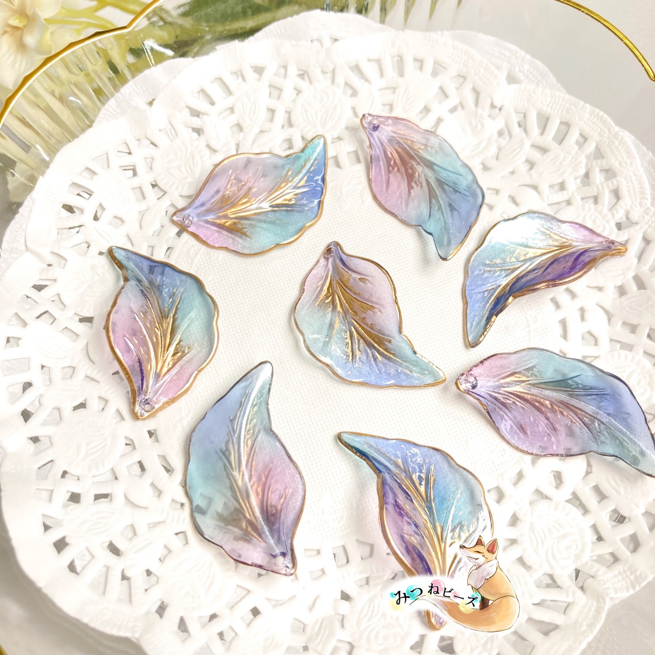 パールベース リーフチャーム ピンク×アクアブルー×ブルー×ゴールド