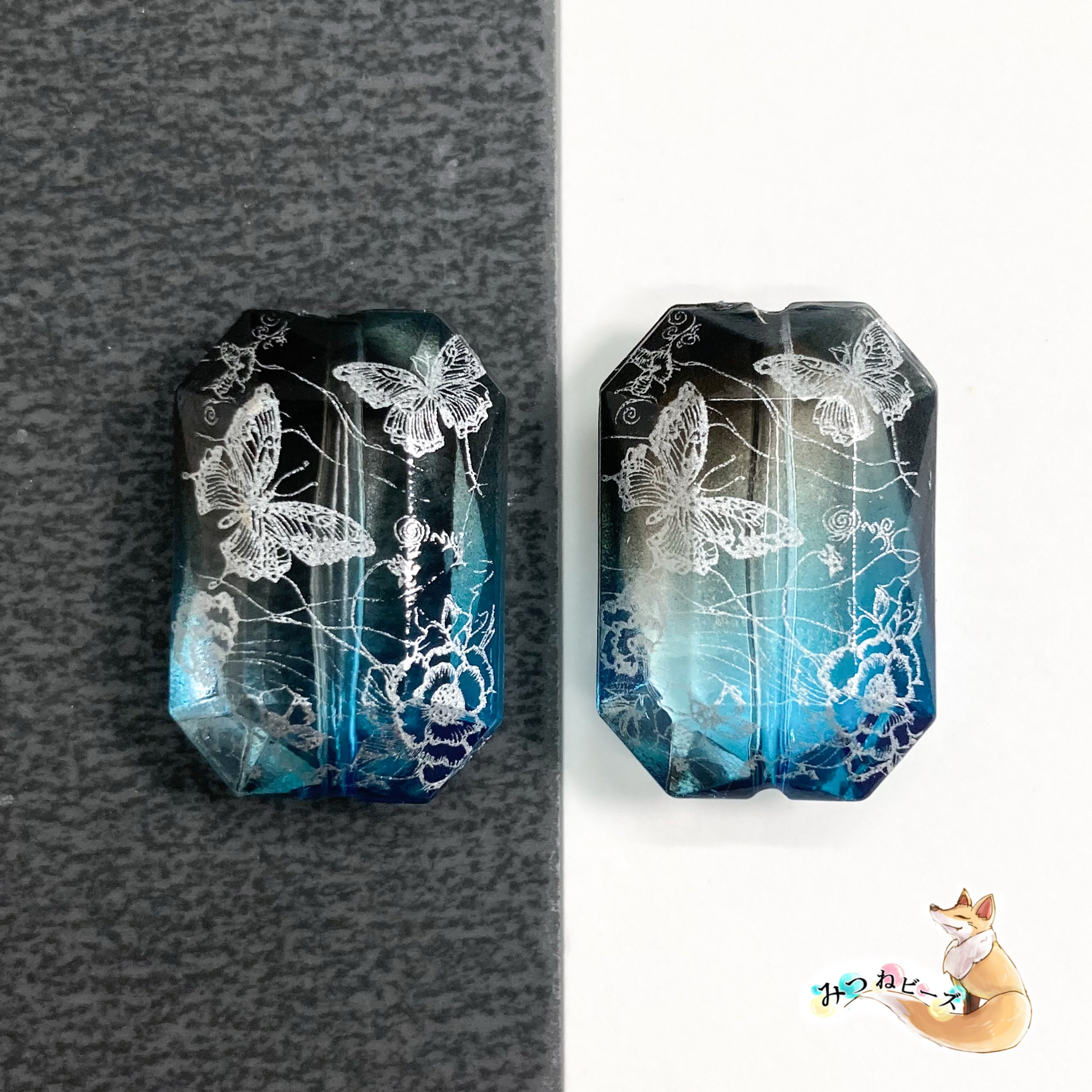 繊細な蝶柄 2カラー アクアブルー×ブラック×シルバー