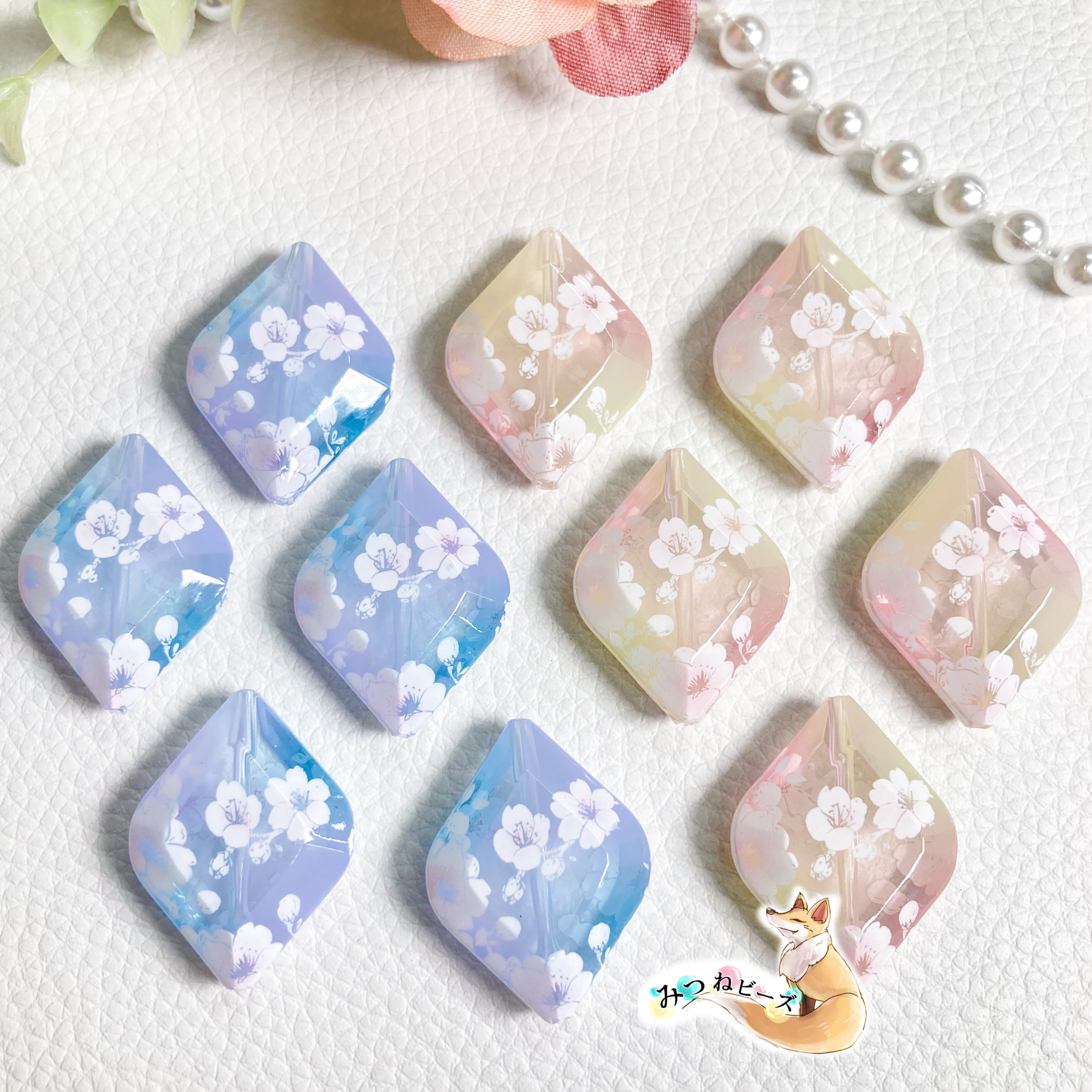 透けてはっきりと発色するクリアなカラーで着色し、ほんのり色付けた桜柄をつけ愛らしく仕上げました