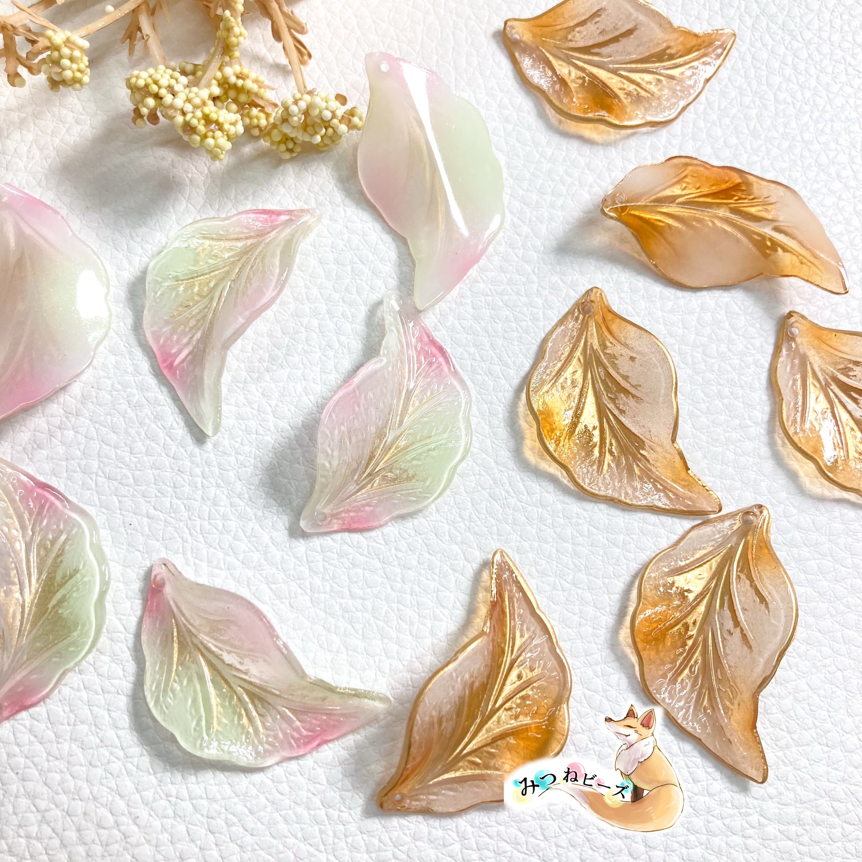 ミルキー×クリア リーフチャーム クリアブラウン×オフホワイト