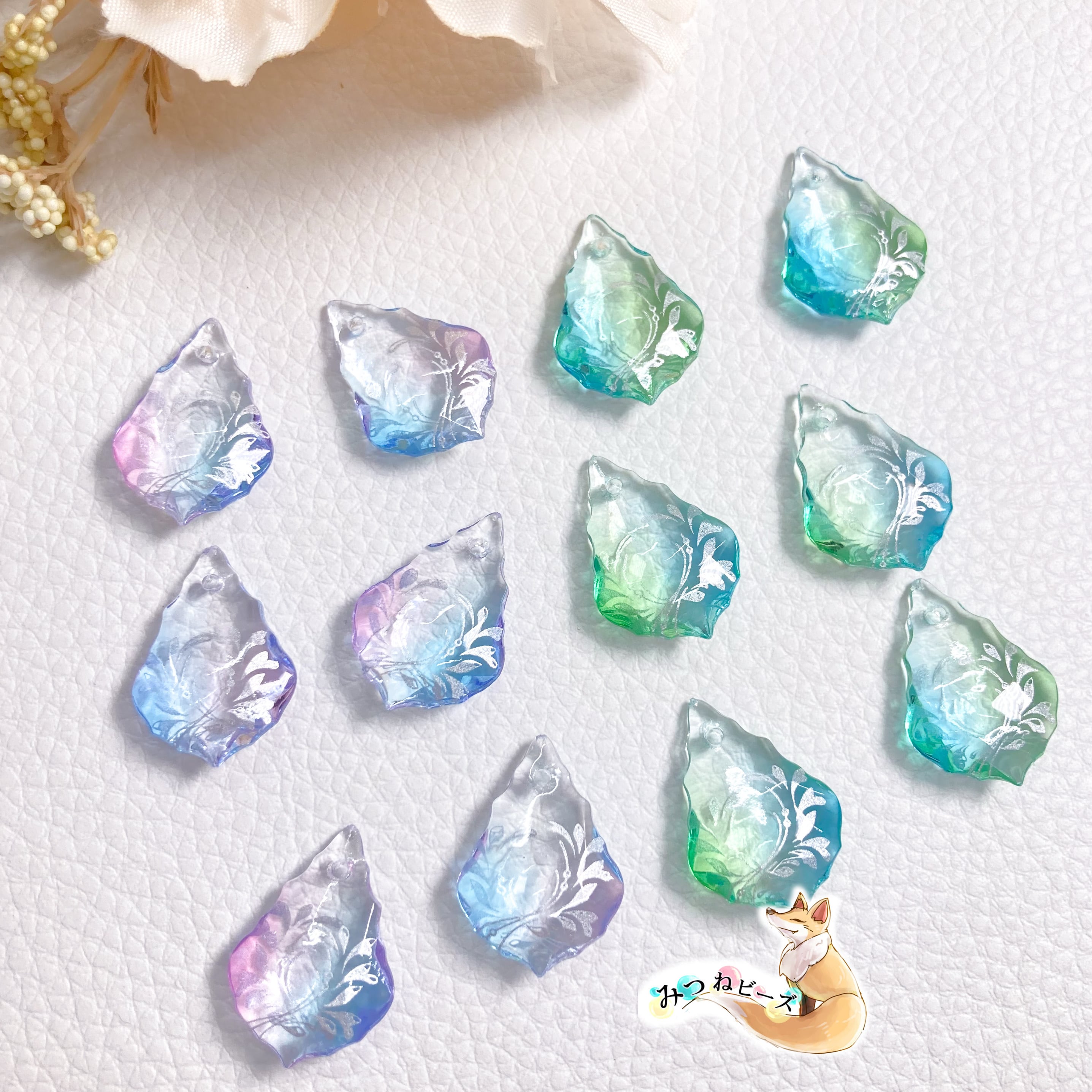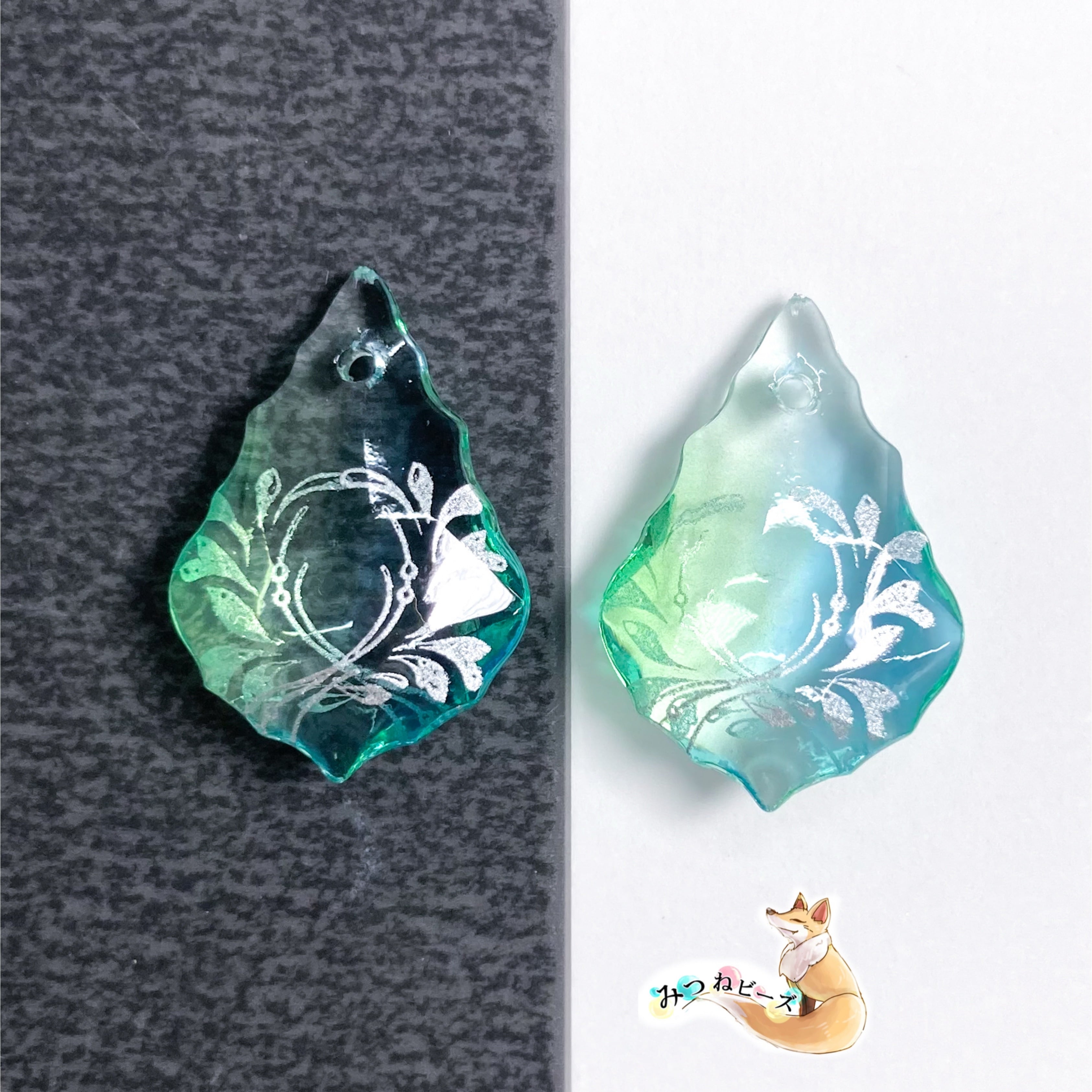 シルバー柄 リーフ型チャーム アクアブルー×ライトグリーン×シルバー