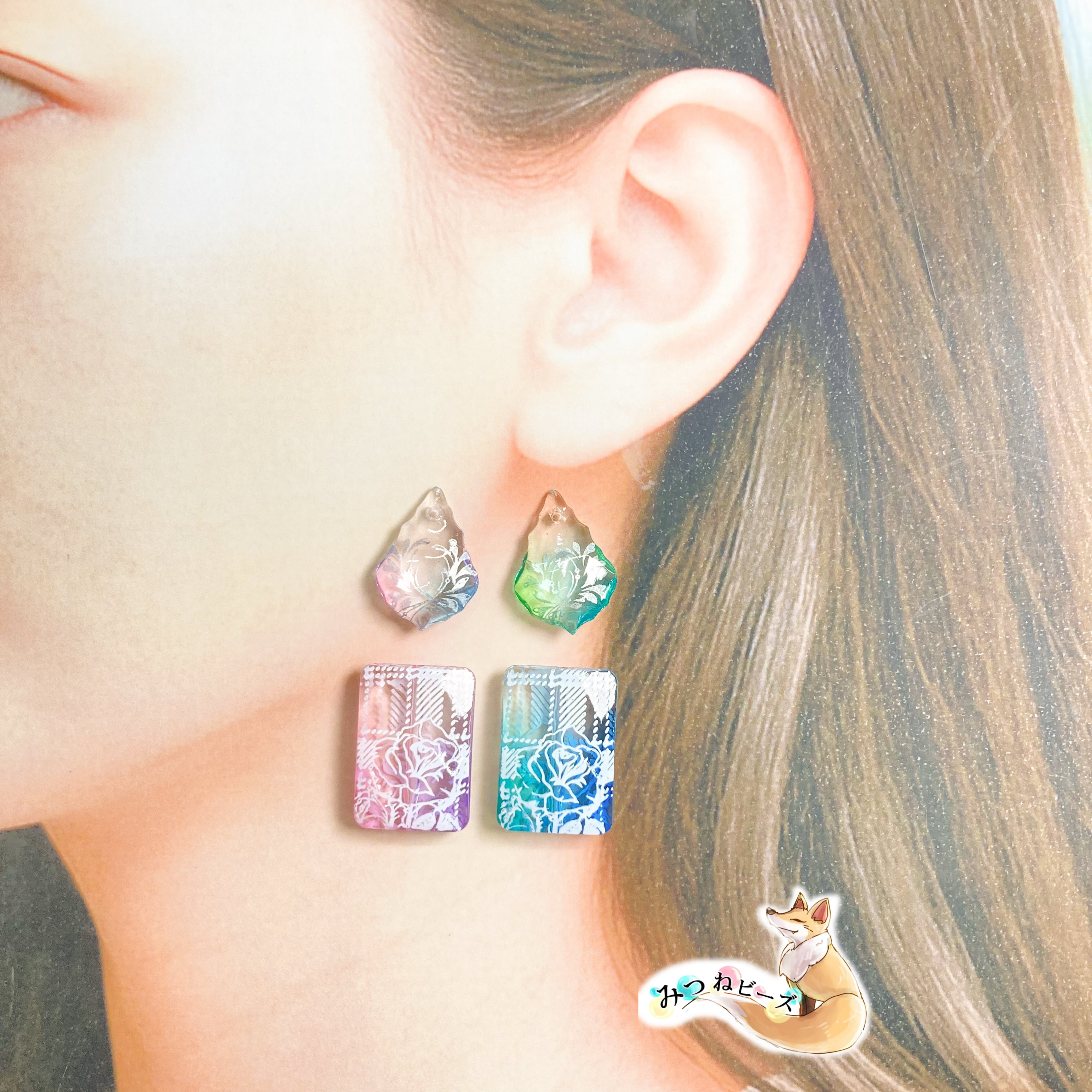 クリアビーズに着色をしたオリジナルビーズです